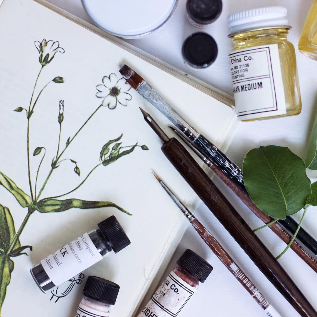 China paints - overglaze paints that can be painted on glazed or unglazed surfaces. It comes in powder form, made from metallic and mineral oxides. Some of them contain lead, so precautions need to be taken when painting.